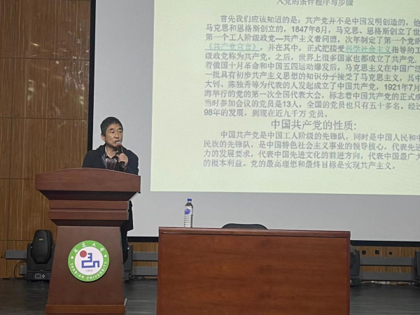 本次党课有幸邀请到了州委党校林花老师、校党委组织部组织员朴日龙老师、文学院党办主任韩冰老师为同学们进行授课。课上,三位老师分别以“不忘初心百年路,踔厉奋发新征程”、“入党条件、程序与步骤”、“深入学习中国共产党章程,做新时代合格的共产党员”为主题开展党课教育,详细讲授了入党动机、入党流程、党章内容、会议精神等相关内容,全体参加人员认真听讲记录,现场反响热烈。10月30日至11月4日,各小组围绕党课培训主题展开讨论并提交了党课心得,进一步巩固了党课学习的成果。11月5日及11日,学院党委通过学习通平台在西部教学楼组织了党课结业考试。