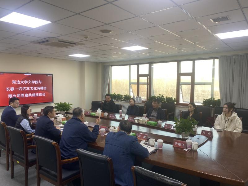 近日,延边大学文学院一行到一汽富华生态有限公司(以下简称“一汽富华”)开展党建共建交流会。双方以“党建引领促发展、资源共享共提升”为主题,正式开启校企党建合作新篇章。延边大学文学院党委书记金银松,一汽富华党委副书记、纪委书记、工会主席刘振国,相关职能部门负责人参加会议。