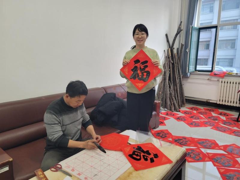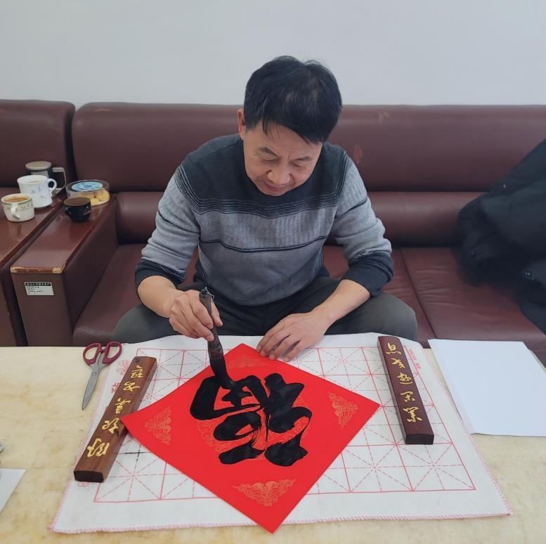 12月30日,在元旦佳节来临之际,文学院工会教师书法协会开展“文脉迎春·翰墨纳福”写福送福迎新年活动。文学院工会副主席兼教师书法协会会长毕大群老师以书法艺术为载体,为全院教师送上新年的美好祝福。