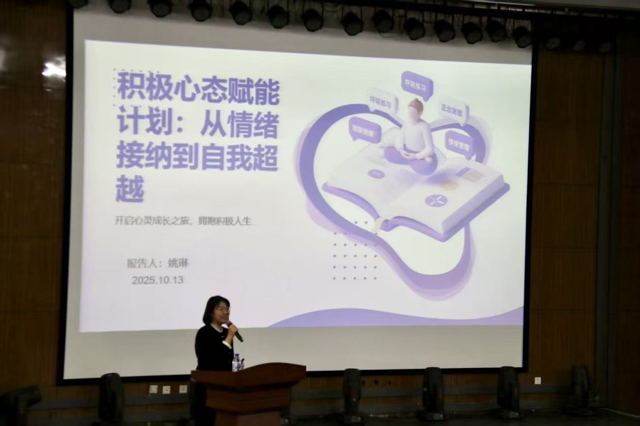为切实促进新生心理健康发展,帮助其提升情绪管理能力,10月13日,延边大学文学院在丹青楼一楼学术报告厅举办“积极心态赋能计划:从情绪接纳到自我关怀”主题讲座。本次讲座由农学院学工办主任姚琳主讲,文学院辅导员全香花与2025级新生共同参与。