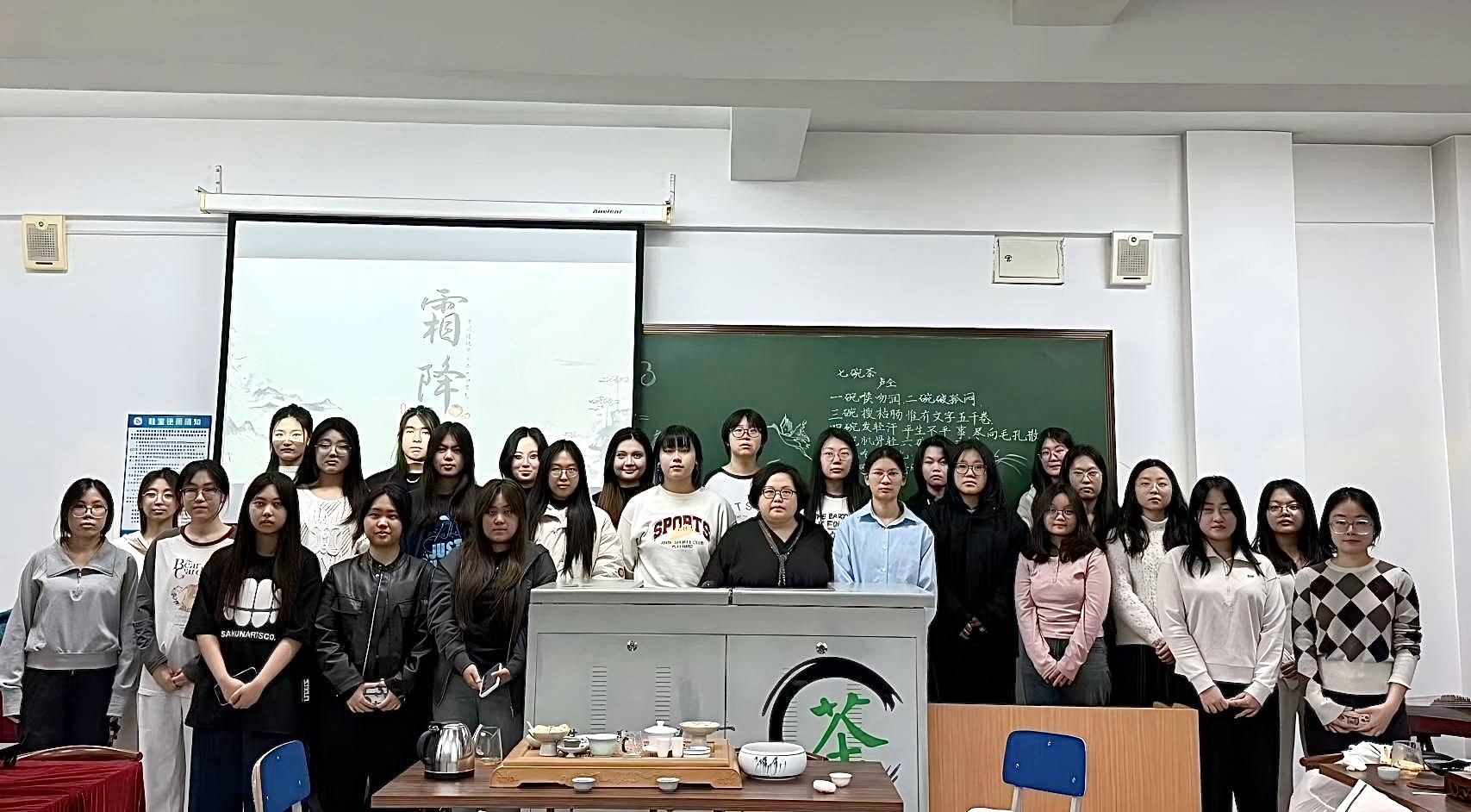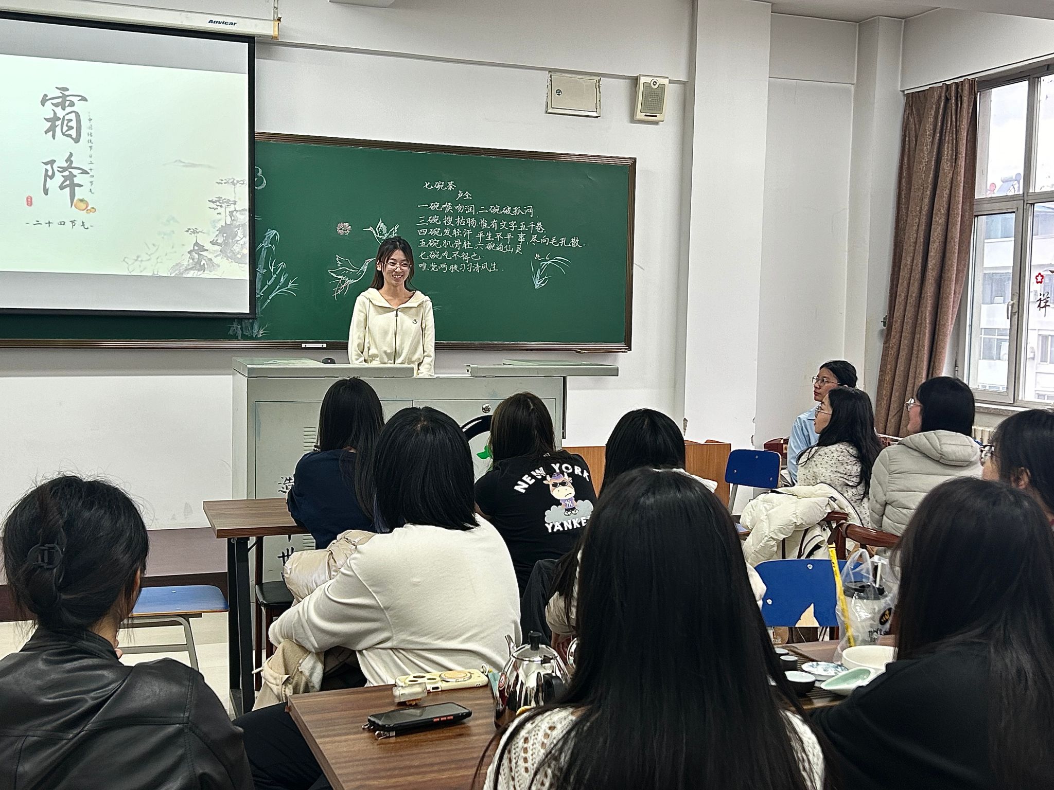 活动以霜降节气为契机,通过品茶与交流相结合的形式,引导学生在茶香氤氲中感受节气文化之美,体悟“以茶修身、以德育心”的内涵。社团成员分组开展冲泡实践,在比香、观色、品味中学习茶艺、交流心得。