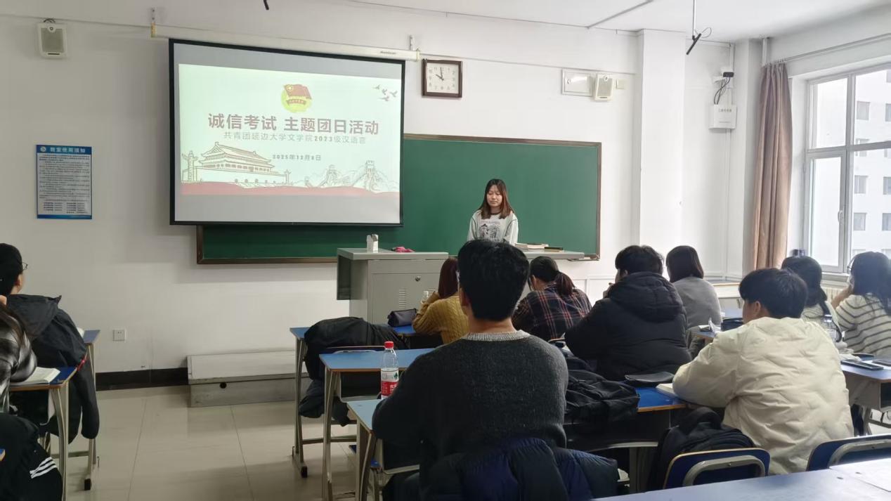 学院对本次诚信考试教育工作给予高度重视,提前统筹规划、细化实施安排。各班级以主题班会为载体,依托易班优课的主题课程,组织同学们认真观看诚信考试教育视频;各专业辅导员为同学们解读《学生手册》考试管理相关制度,结合过往考试作弊典型案例,剖析此类行为对个人学业发展以及班级集体荣誉的严重危害;各班学习委员还牵头领学《中华人民共和国教育法》《普通高等学校学生管理规定》等法规文件,进一步明晰考试纪律的刚性约束。最后,全体学生集中签署《延边大学诚信考试承诺书》,郑重立誓将严守考规、诚信应考,以真实成绩检验自身学习成效。