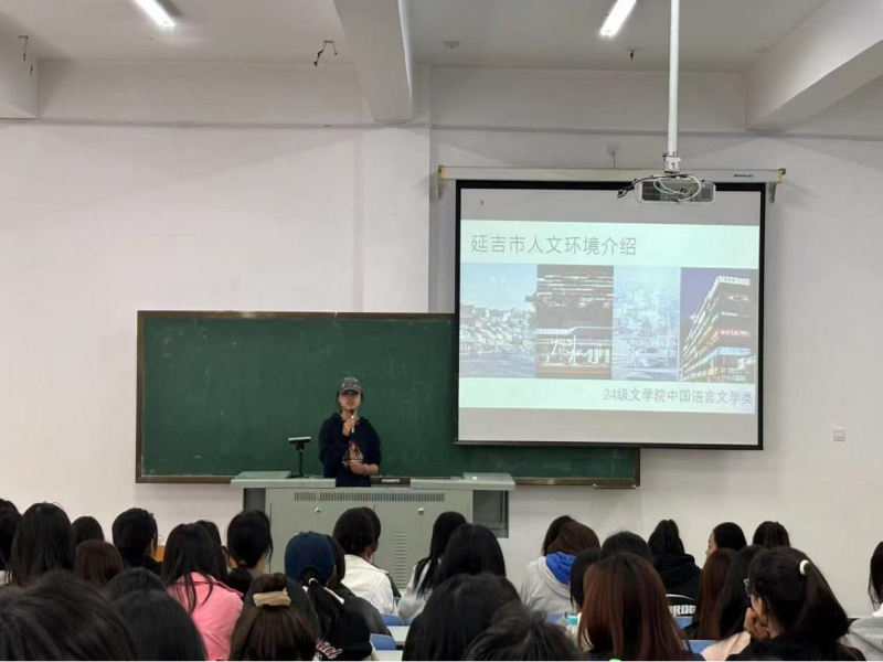 为加强同学们对延吉市的了解和认识,丰富大家的课外娱乐活动,更好地体验和适应大学生活。9月19日文学院于勤学楼105教室召开了延吉市人文环境娱乐攻略班会。本次班会由延吉本地同学进行讲解,中国语言文学类全体同学按时参加。